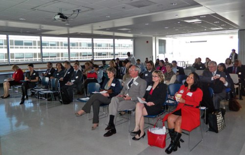 Tour goers were impressed by the attention to detail that was designed into the new facility with the outcome of an increase in quality patient care and comfort.  Whether it was the unique butterfly-shaped floor wings, the high-tech touch in patient rooms, the play space for visiting children, or the indoor-outdoor atrium in the entrance pavilion, attendees felt that Rush care givers have hit the mark in their new structure’s layout and features. Not to be overlooked is the eastward view of Chicago from the hospital’s outdoor terraces—a special treat for patients, visitors, and staff.