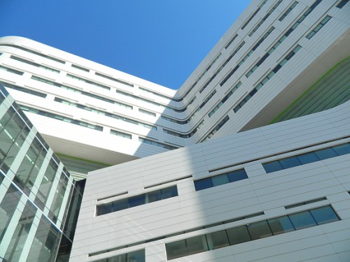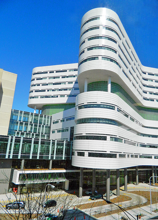 The unique butterfly shaped design allows every patient room to have a window and lots of light. The building also has beautiful outdoor terraces, quiet open areas and spaces for children.