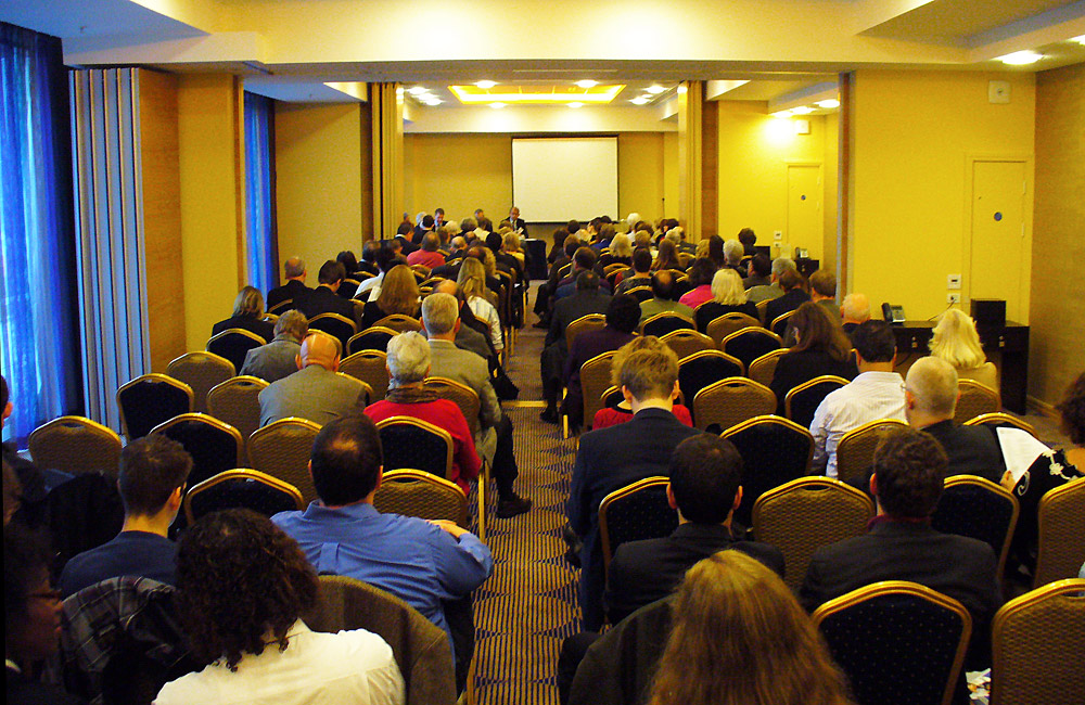 Fulbrighters participate in the open plenary at the Pestana Hotel in London during the 35th Fulbright Annual Conference