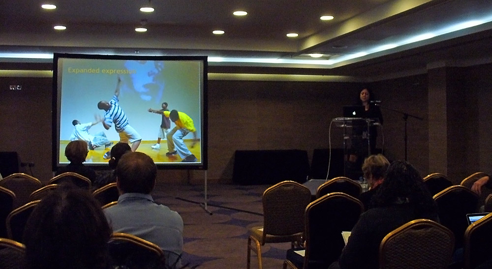 Josephine Dorado, winner of the Selma Cohen Award, during her presentation “Instant Online Collaboration: Just Add Dance!”