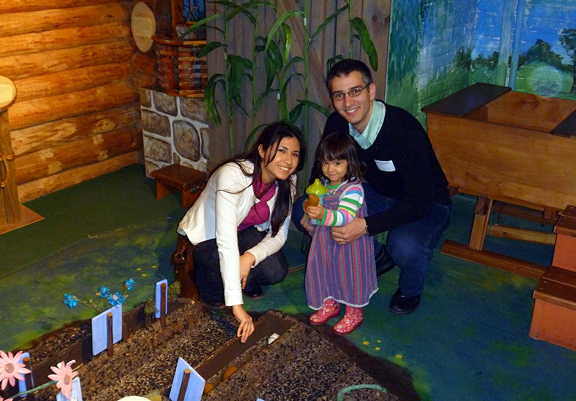 Spanish Fulbrighter Federico Padrones with his wife and daughter on the third floor of the museum, at the children exhibit