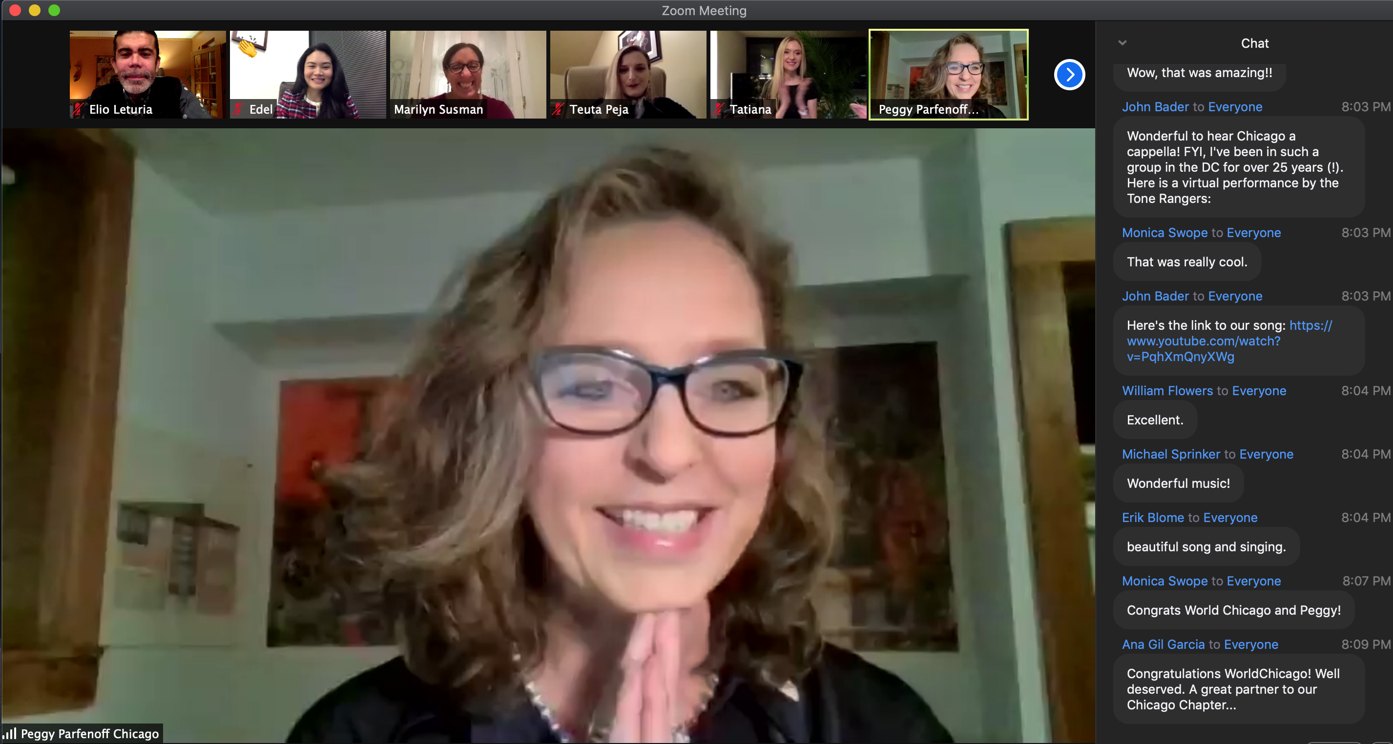 For the first time, the Chicago chapter also honored an organization: World Chicago. President Peggy Parfenoff received the award on the group’s behalf.