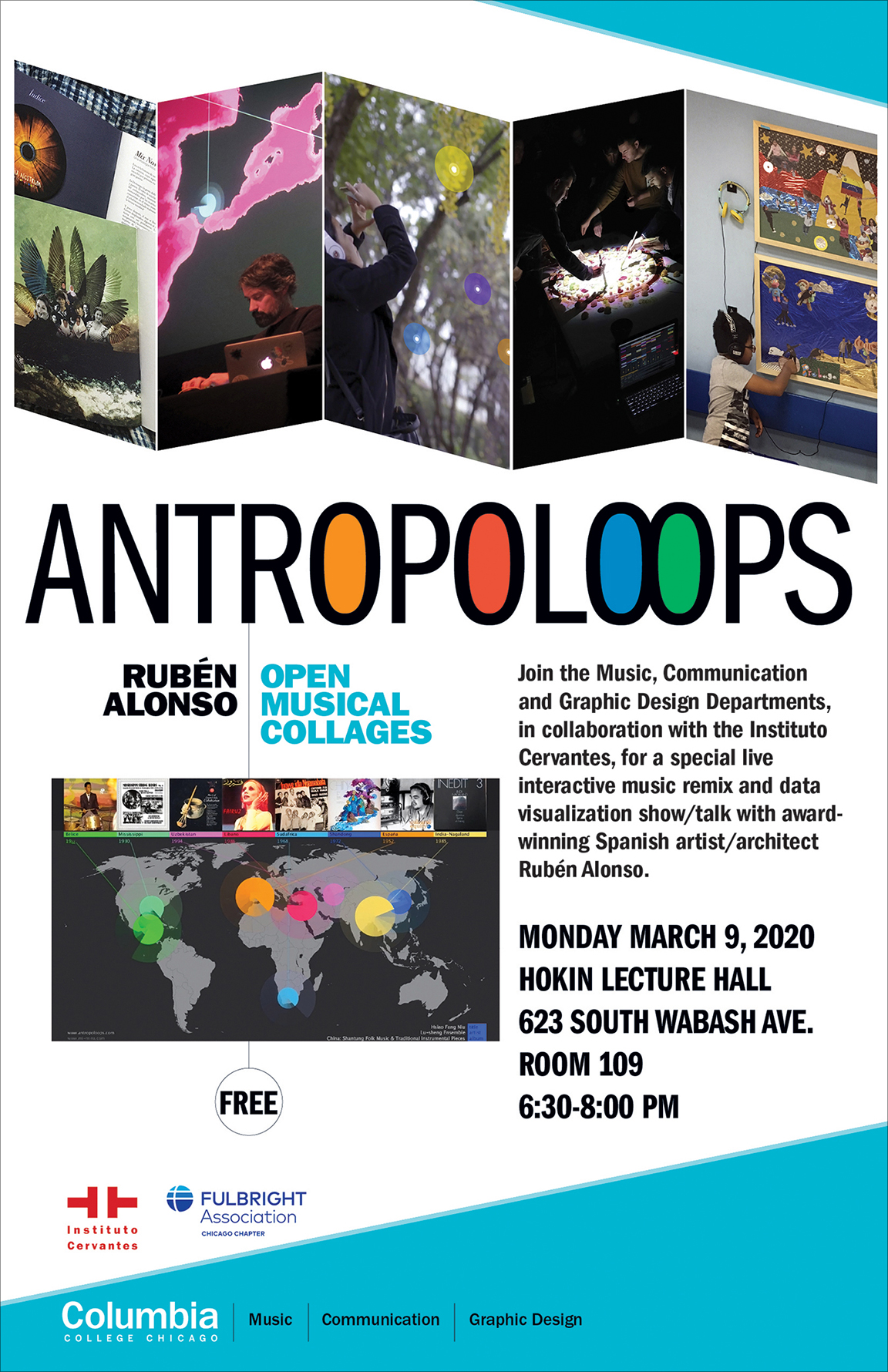 —By Elio Leturia MUSIC AND VISUALS! Join the Columbia College Chicago Music, Communication, and Design Departments, in collaboration with the Instituto Cervantes and the Chicago Chapter of the Fulbright Association for a special live interactive music remix and data visualization show/talk with award-winning Spanish artist/architect Rubén Alonso.