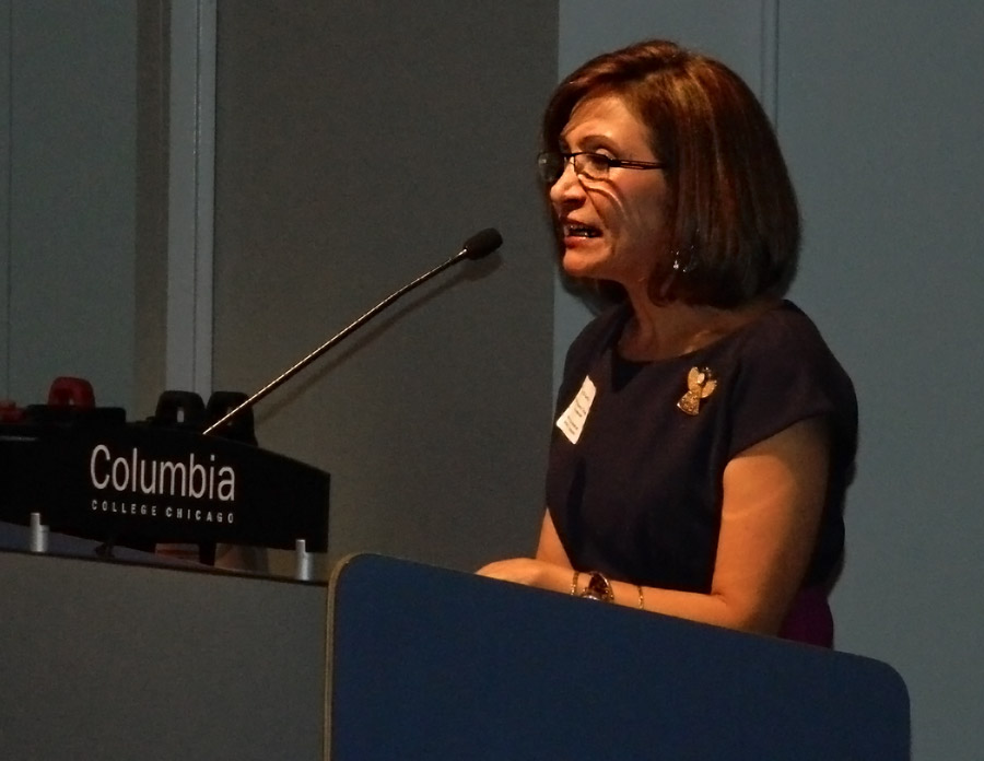 Last year Dee Sarelas Service Award recipient Elio Leturia from Columbia College Chicago, presenting Ron Harvey with the 2014 award.