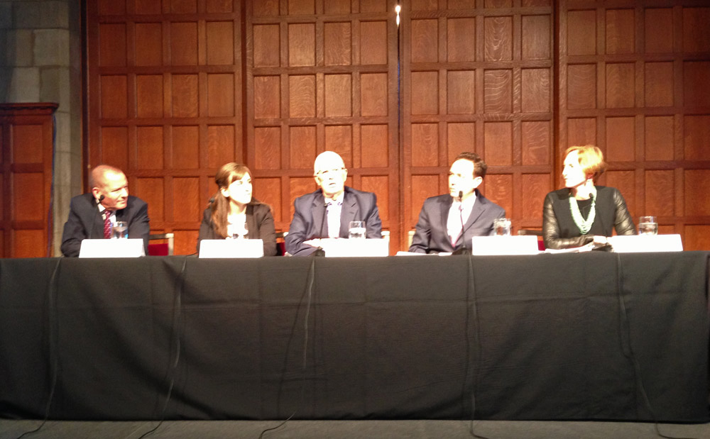 Past Fulbright Chicago Chapter president Don Garner talks to Dr. Marilyn Susman (2010 Dee Sarelas Award recipient) and her husband Gary Auerbach.