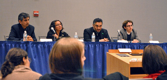 Argentine Deputy Consul Marcelo Boffi talks to Honduran Fulbright scholar Joan Miguel López.