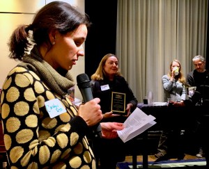 Cristina Sisson, previous Dee Sarelas Service Award winner announces the 2018 recipient.