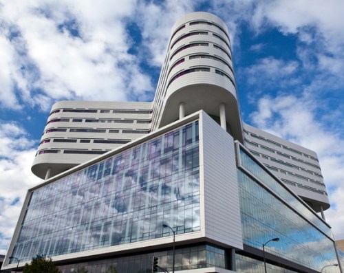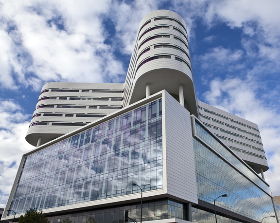 The unique butterfly shaped design allows every patient room to have a window and lots of light. The building also has beautiful outdoor terraces, quiet open areas and spaces for children.
